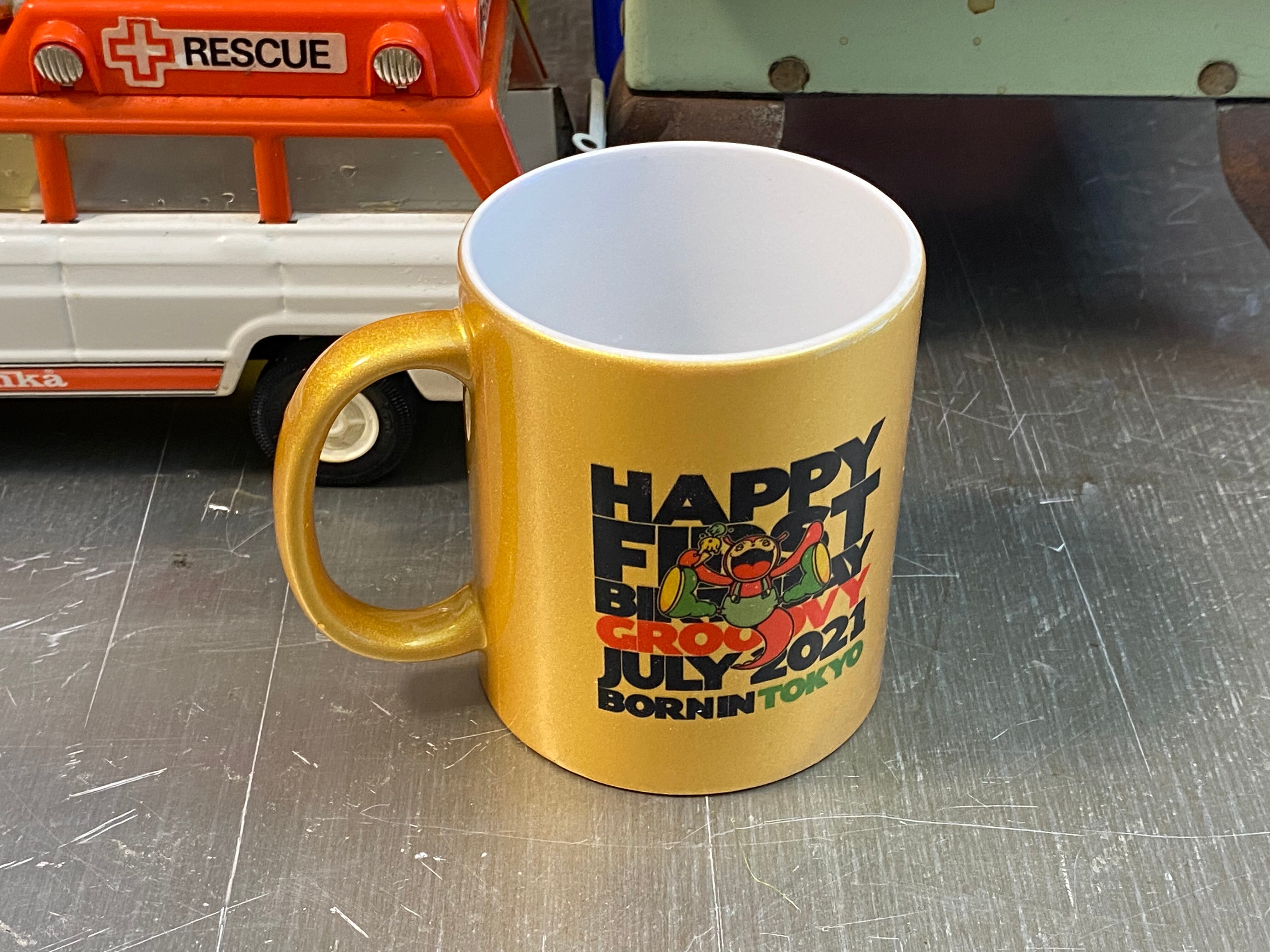 Grooovy誕生1周年を記念して作られた存在感バツグンで特別感のある金色マグカップです。